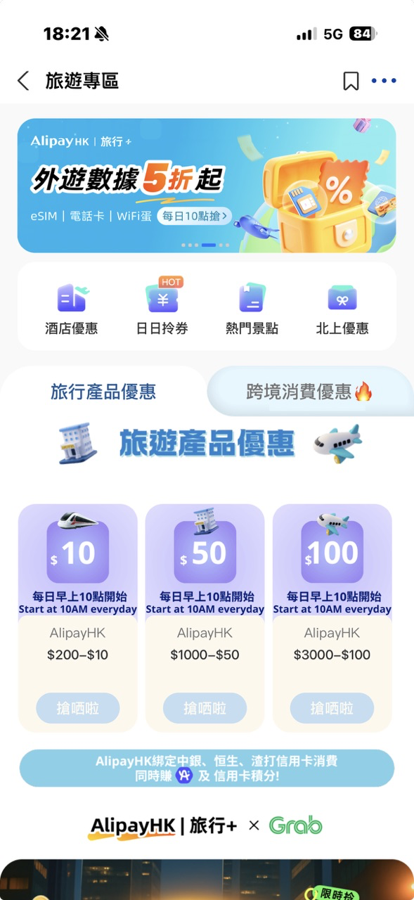 AlipayHK App 內的「旅遊專區」定期更新各類熱門商戶的推廣優惠,無論是購買機票、酒店、景點門票,還是預訂精彩活動,都可免費領取折扣券或以優惠價購買。將頁面收藏,即可第一時間掌握最新獨家優惠及旅遊資訊!