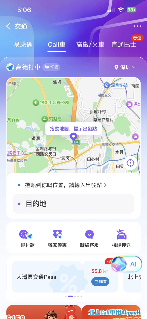 AlipayHK App 內即可訂購高鐵車票、直通巴士或call車,亦可使用跨境乘車碼搭乘內地公共交通,一 App 集齊所有交通所需,令內地出行更加輕鬆。