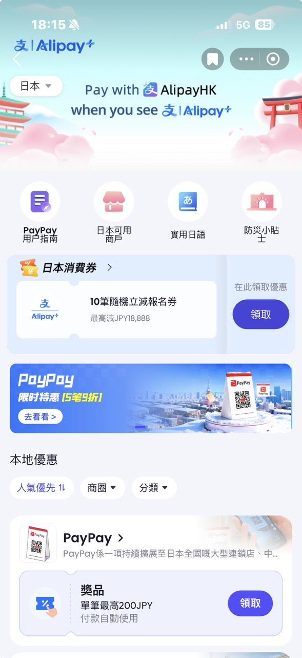 支援商戶超過百萬間,涵蓋便利店、藥妝、百貨、電器舖等,包括 BicCamera、三井購物公園、大國藥妝等熱門店舖,即使日本的士均可用 AlipayHK 直接支付,無需擔心語言不同。