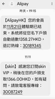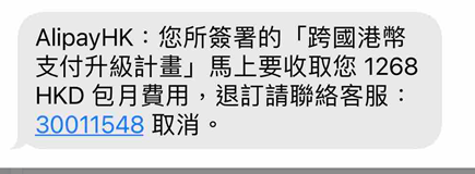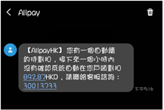 *AlipayHK發現近期冒充AlipayHK名義的釣魚短訊及來電之内容如下:
