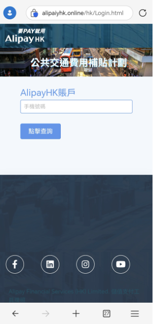 偽冒網站: https://alipaiyhk[.]online/hk 、 https://fet-woxx[.]online/hk